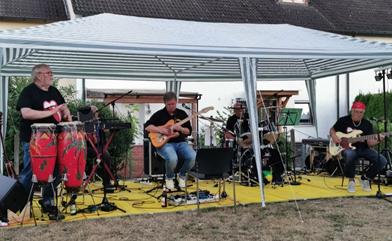 ---------------------------------------------------------------------------------------- Blues und Jazz Open 2025 AWO-Rockers begeisterten auch 2025 wieder beim Auftritt am „Jazz-Blues-Open“ Beat- und Rockmusik aus drei Jahrzehnten am Badhausplatz Wendelstein - Die „AWO-Rockers“ machten mit ihrem Auftritt am Badhausplatz im Rahmen des großen Programms der „Jazz-Blues-Open“-Tage 2025 in Wendelstein problemlos dort weiter, wo sie bei ihrer Premiere letztes Jahr aufgehört hatten: Bei bestem Auftrittswetter zum Mittanzen und Musikgenießen kamen heuer mehr als 150 Musikbegeisterte zu dem Live-Konzert am Nachmittag und wurden von den „Recken von und zu Rock‘n Roll“ mit Klassikern der Beat- und Rockära ab den 1960er Jahren bis zu moderneren Stücken der 1990er Jahre „verwöhnt“. Insgesamt knapp 400 Jahre Musikleidenschaft sind auf der Bühne versammelt, wenn die „AWO-Rockers“ als musikbegeisterte Aktive vom örtlichen AWO-Ortsverband im Alter von über 50 bis zu 76 Jahren mit lebenslanger Freude an Beat- und Rockmusik zum Konzert einladen: Diese Freude lebten die „Recken von und zu Rock‘n Roll“ auch heuer beim Konzert im Rahmenprogramm des Jazz-Blues-Open in Wendelstein begeistert vor: Vor mehr als 150 Musikfreunden aller Altersstufen boten Klaus Pusch (Bandleader, Gitarre), Reini Wagner (Vocal), Wolfgang König (Bass), Juoni Aikio (Schlagzeug), Chris Bach (Sologitarre) und Jörg Reisner (Keyboard) gern ihr Bestes. Gemeinsam mit Harry Büchs (Technik) im Hintergrund streckten die begeisterten Musiker, die in ihrer Jugend bereits in regionalen Bands spielten und immer noch gern bekannte Stücke ab der Zeit der 1960er Jahre bis in die 1990er-Jahre als „AWO-Rockers“ präsentieren, auch jetzt dem Alter sprichwörtlich „die Zunge heraus“. Ihr Konzertprogramm mit international bekannten Stücken von Beat-, Country-, Blues-, Pop- und Rock‘n Roll-Größen kam beim Publikum am Badhausplatz im Wendelsteiner Altort zudem gut an: Einige wagten neben Mitsummen, Mitsingen und Mitfeiern der Klassiker sogar ein flottes Tänzchen auf der Freifläche vor der Bühne. Musikalische Zeitreise durch drei Jahrzehnte Die knapp 30